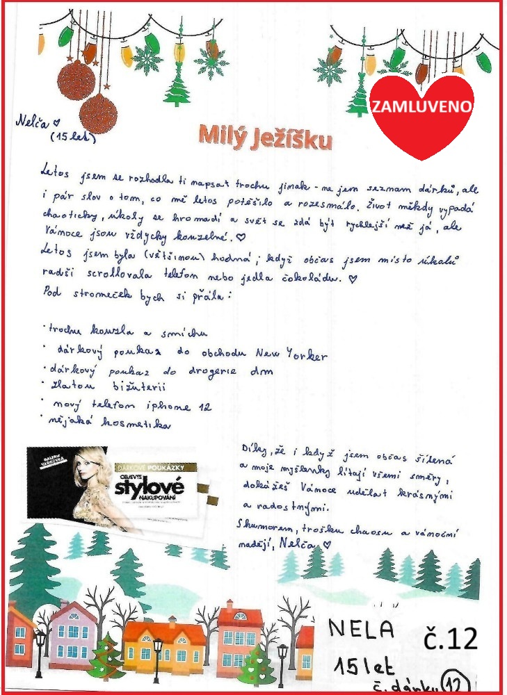 Vzhledem k tomu, že se Štědrý den v azylovém domě uskuteční dříve, je potřeba, aby byly dárky doručeny nejpozději do 12. 12. 2025.
