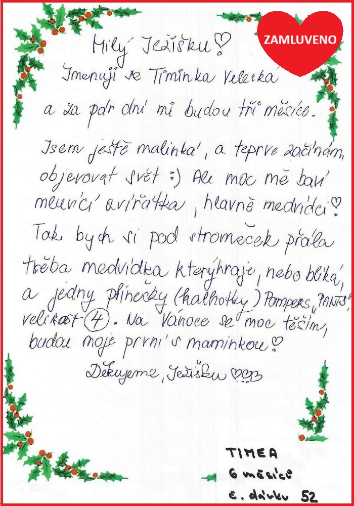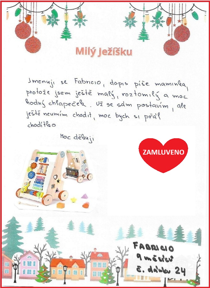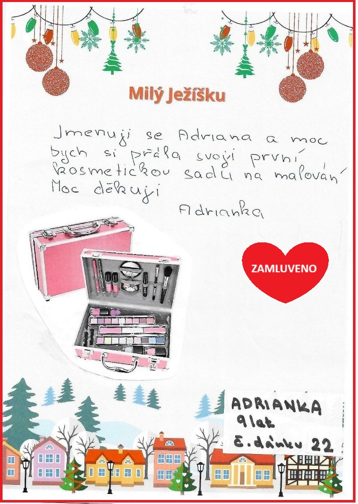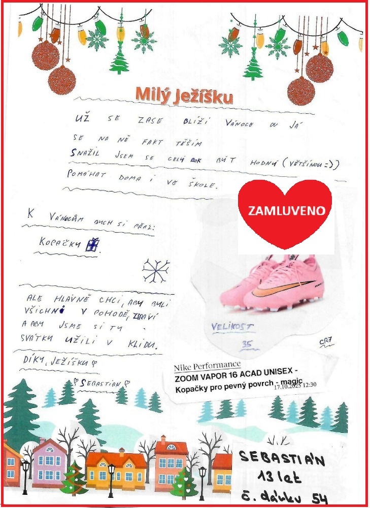 Vzhledem k tomu, že se Štědrý den v azylovém domě uskuteční dříve, je potřeba, aby byly dárky doručeny nejpozději do 12. 12. 2025.