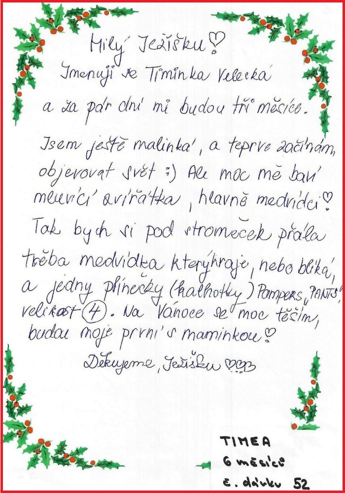 I letos jsme pro vás připravili vánoční obrázky, které s láskou namalovaly děti z azylového domu sv. Markéty v Brně. Každé dítě vložilo do svého obrázku přání a naději, že si Ježíšek jejich přání přečte.